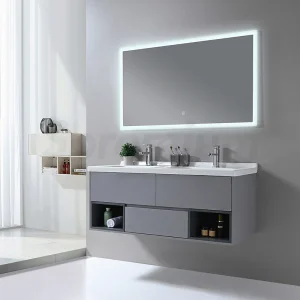 Grey Double Sink Modern Fancy Wall Bathroom Cabinet Vanity with LED Mirror