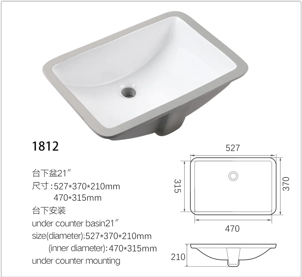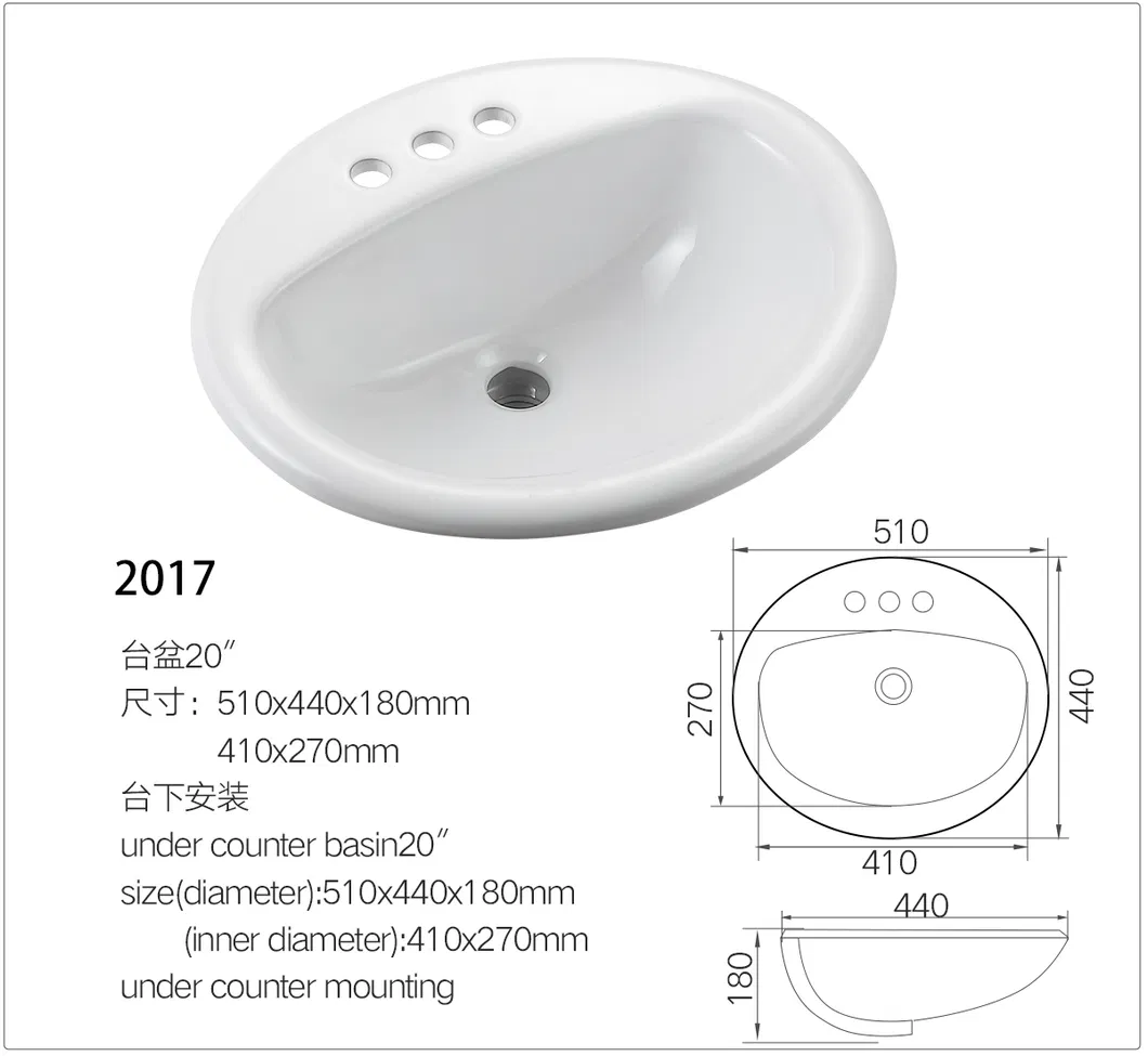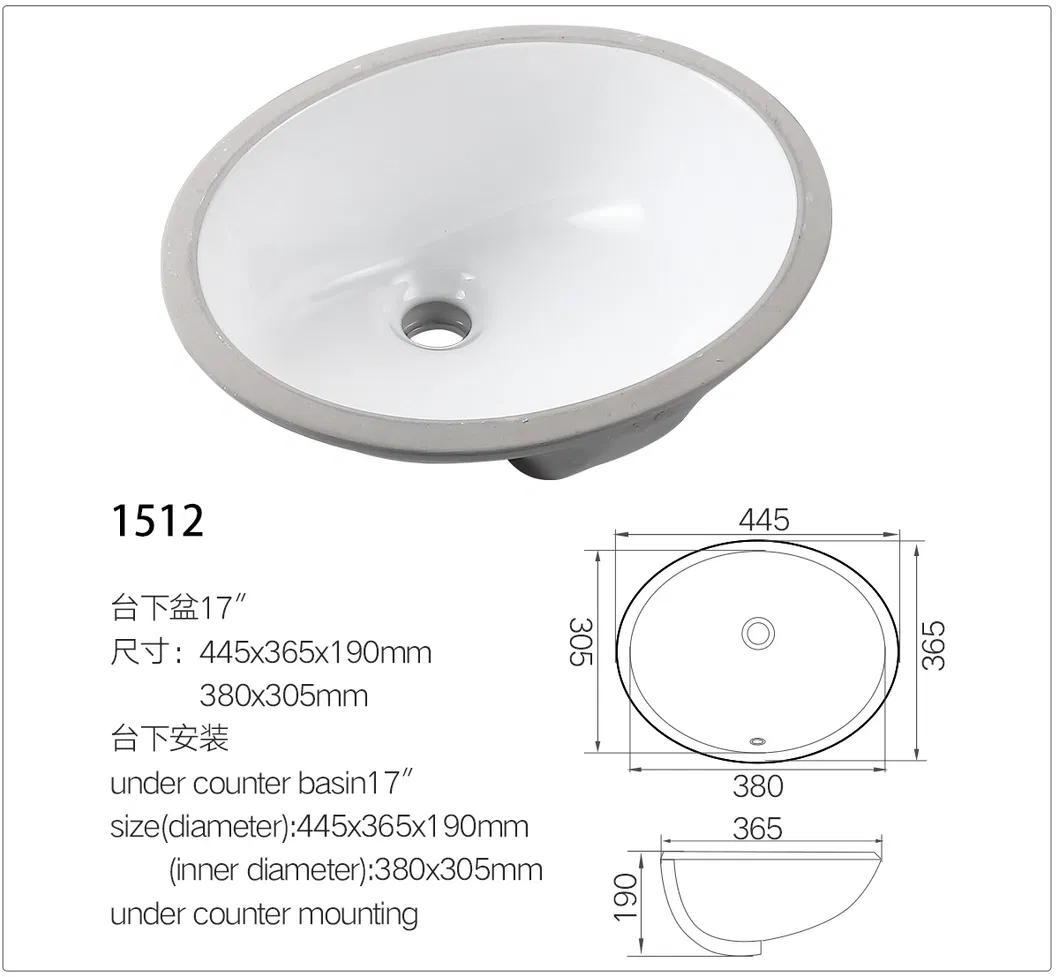 | Product Name | Under counter basin | Size | 515*385*190mm |