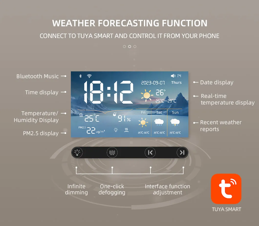 | OPTIONS | Custom Shape, LED Clock, Bluetooth Speaker, Touch Sensor, Custom Logo. |